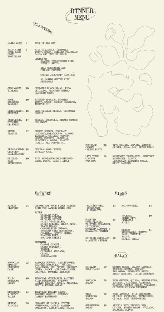 "Candle" offers a delightful menu of vegan tacos, with options for delivery and takeout at their location in New York City. The diverse selection includes hearty salads like the Aztec Salad with chipotle grilled tempeh, flavorful starters such as Butternut Squash Ravioli, and satisfying entrees like the Butternut Squash Risotto. Customers rave about the vibrant flavors and fresh ingredients, praising dishes like the Kale Caesar and the Cajun Seitan Sandwich. The cozy ambiance and friendly service add to the overall dining experience. While some reviewers mention slightly higher prices, the overall consensus is positive, with many diners appreciating the innovative plant-based offerings at Candle.